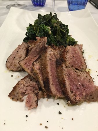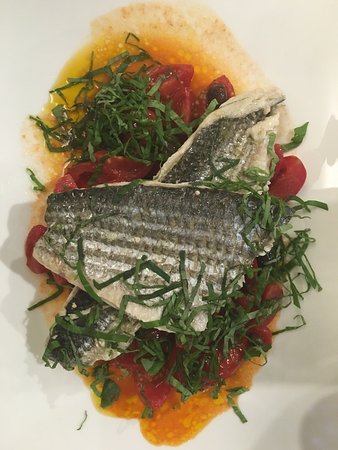Cucina rassicurante e curata sia nei primi piatti (pasta fresca e pesce, ravioli, tartufo estivo, zuppa di gallinella) che nei secondi piatti dove il pesce la fa...